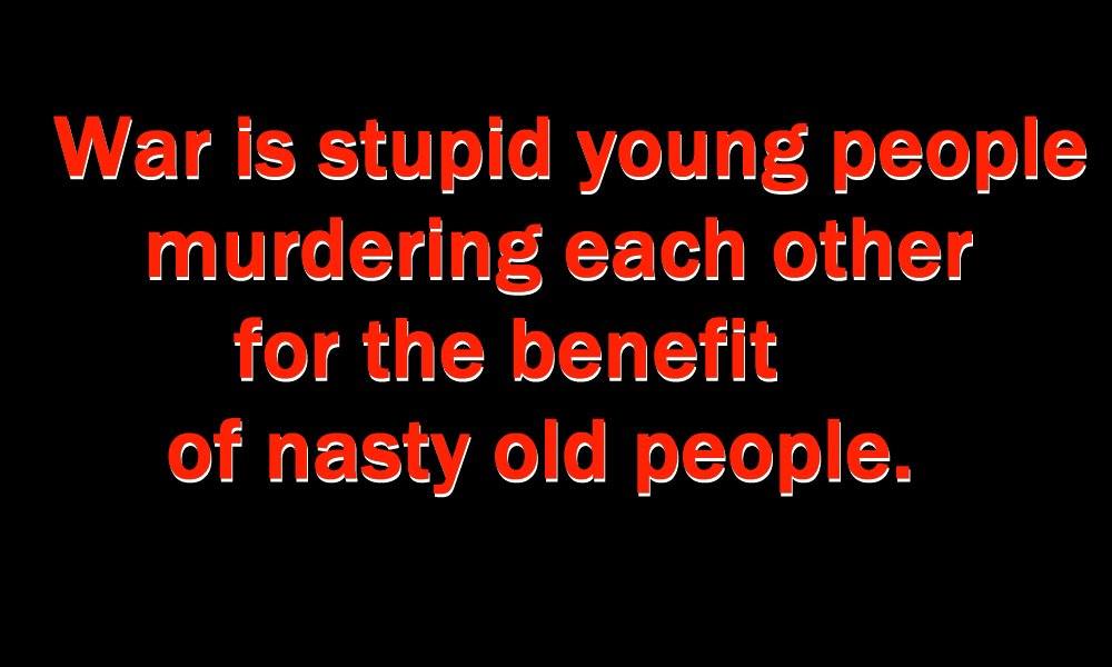 Is not necessary, not heroic, not glorious it is promoted by weapons manufacturers who bribe politicians who use the media to brainwash the common people |